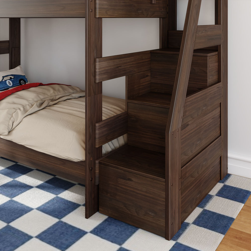 Solid Wood Max and Lily Modern Farmhouse Twin Over Twin Bunk Bed With Stairs