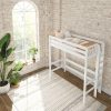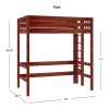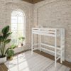 Take your style to new heights with our Twin Uber Loft with Straight Ladder on End. This loft bed has almost 6 feet of underbed height, plenty of space to add a desk, extra storage or a lounge area with plenty of standing room. Designed with safety in mind, this loft bed has 2 cross bars on 3 sides to add extra strength and stability. The straight ladder has wide, grooved steps to make it easy to climb up and rests flush against the front of the bed to save space. We do not recommend this bed for kids under the age of 12, and we suggest using the included anti-tip kit to attach the loft bed to the wall for increased safety and stability. This loft bed is assembled upside down and then flipped, so ceiling height must be greater than 97.86 inches high for assembly. Perfect for older kids and teenagers, this loft bed can easily transition with your child from grade school to college.